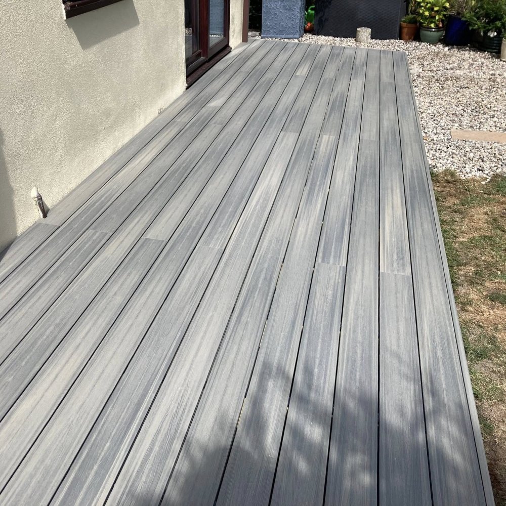 The decking area present a beautiful natural look and the Light Steel colour adds a fresh, modern finish that instantly lifts the whole space. With low maintenance needs and exceptional resilience, this deck is ready for years of enjoyment. Talking of years of pleasure these Armour Boards also come with a 10 year Warrandy from te Manufacturer.